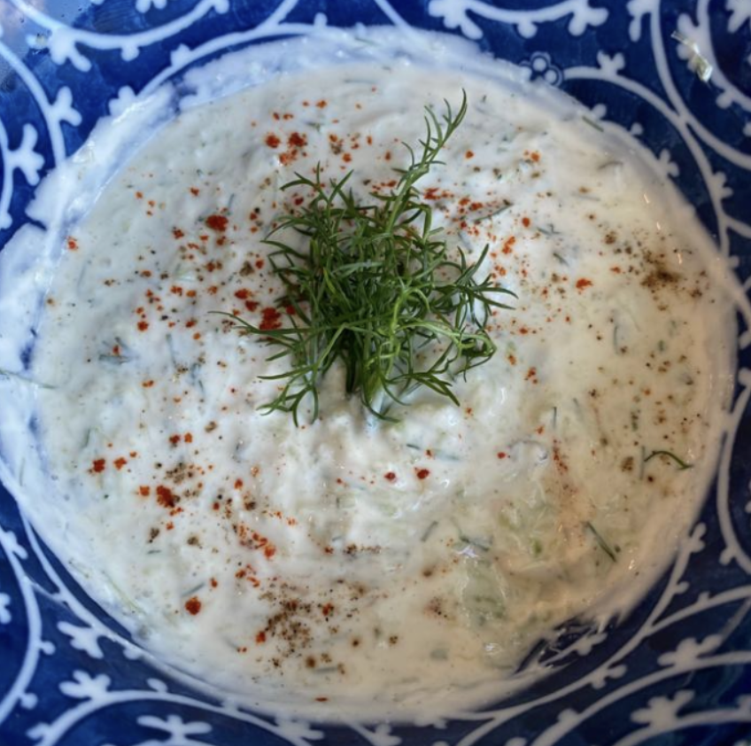 This creamy yoghurt sauce is very versatile and is a perfect accompaniment to many Mediterranean dishes.